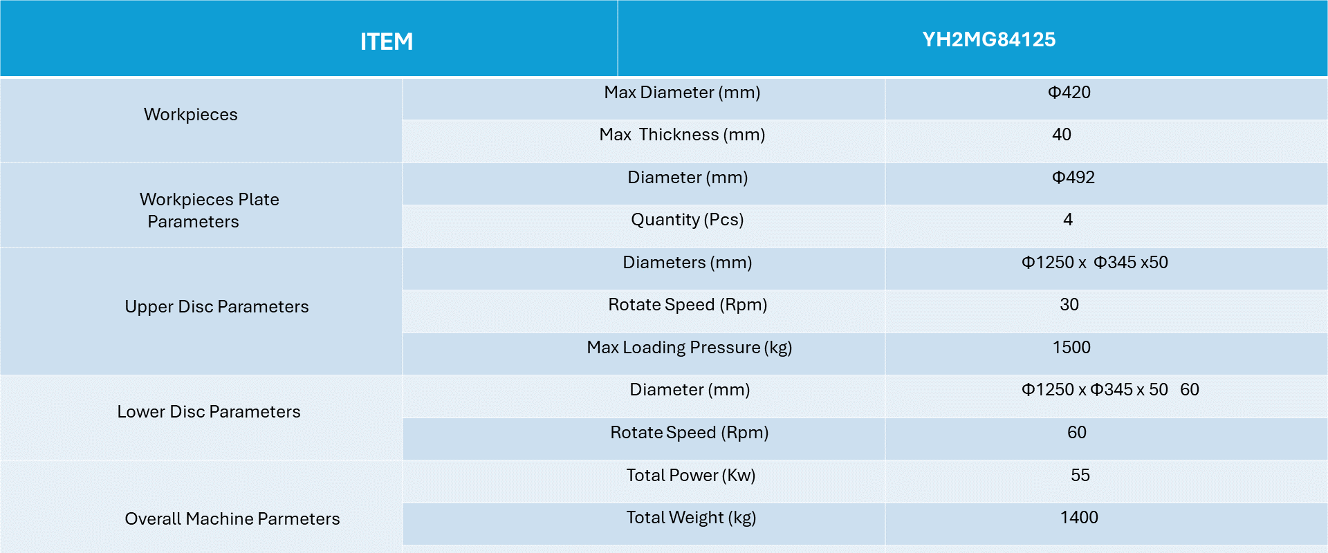 This machine is an automatic, high-efficiency machine , mainly used for lapping polishing the plane ofparts. It uses CBN grinding wheels, diamond grinding wheels, diamond grinding pads, lapping discs, etc. toperform efficient and precise double-sided lapping polishing of metals such as steel, copper, hard alloys,glass, ceramics, non-metallic hard and brittle materials, and semiconductor materials.